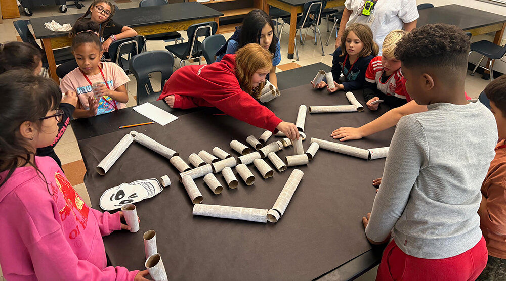 Highland Falls Intermediate School’s CONNECT kids took paper towel tubes, painted them, laid them out on a table and … a skeleton appeared! Nah, it wasn’t that easy. The children,